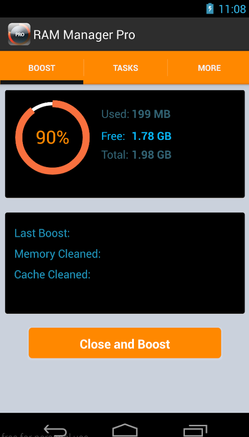 You can Use Ram Manager App with single touch. Touch boost button and clear running process. In Tasks tab you can swipe to clean individual process from ram manager pro. In more tab you also know about your internal and external memory status.